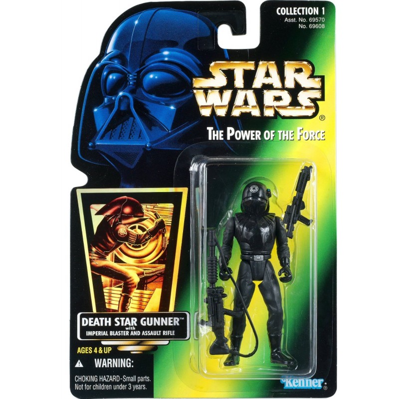 Star Wars The Power of the Force Green Hologram Card, Death Star Gunner Action Figure with Imperial Blaster and Assault Rifle